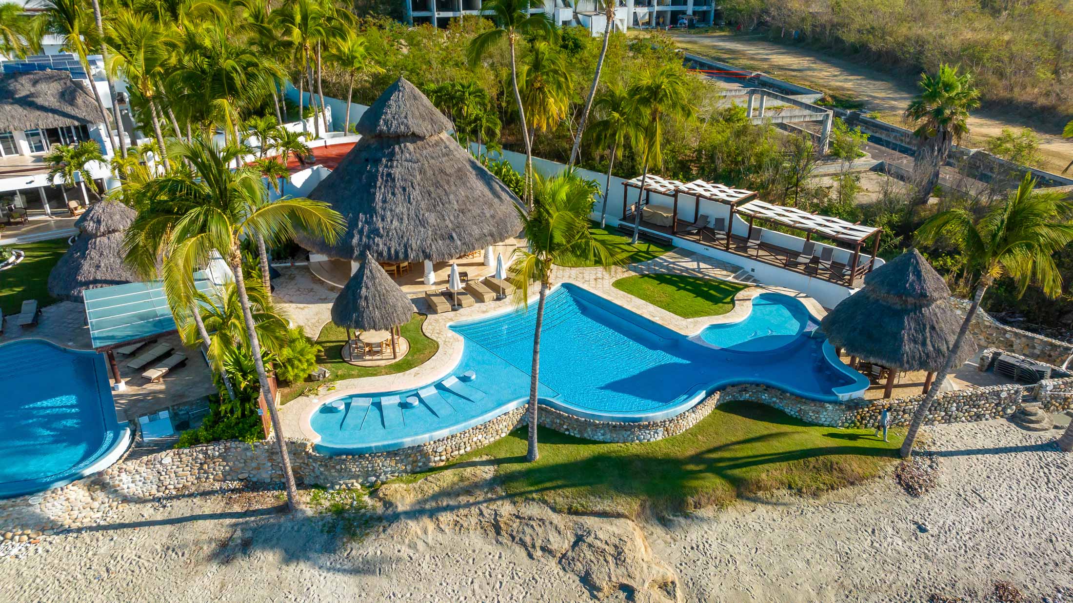 • 2 Covered Palapas, 4 Covered Pergolas, 4 outdoor showers