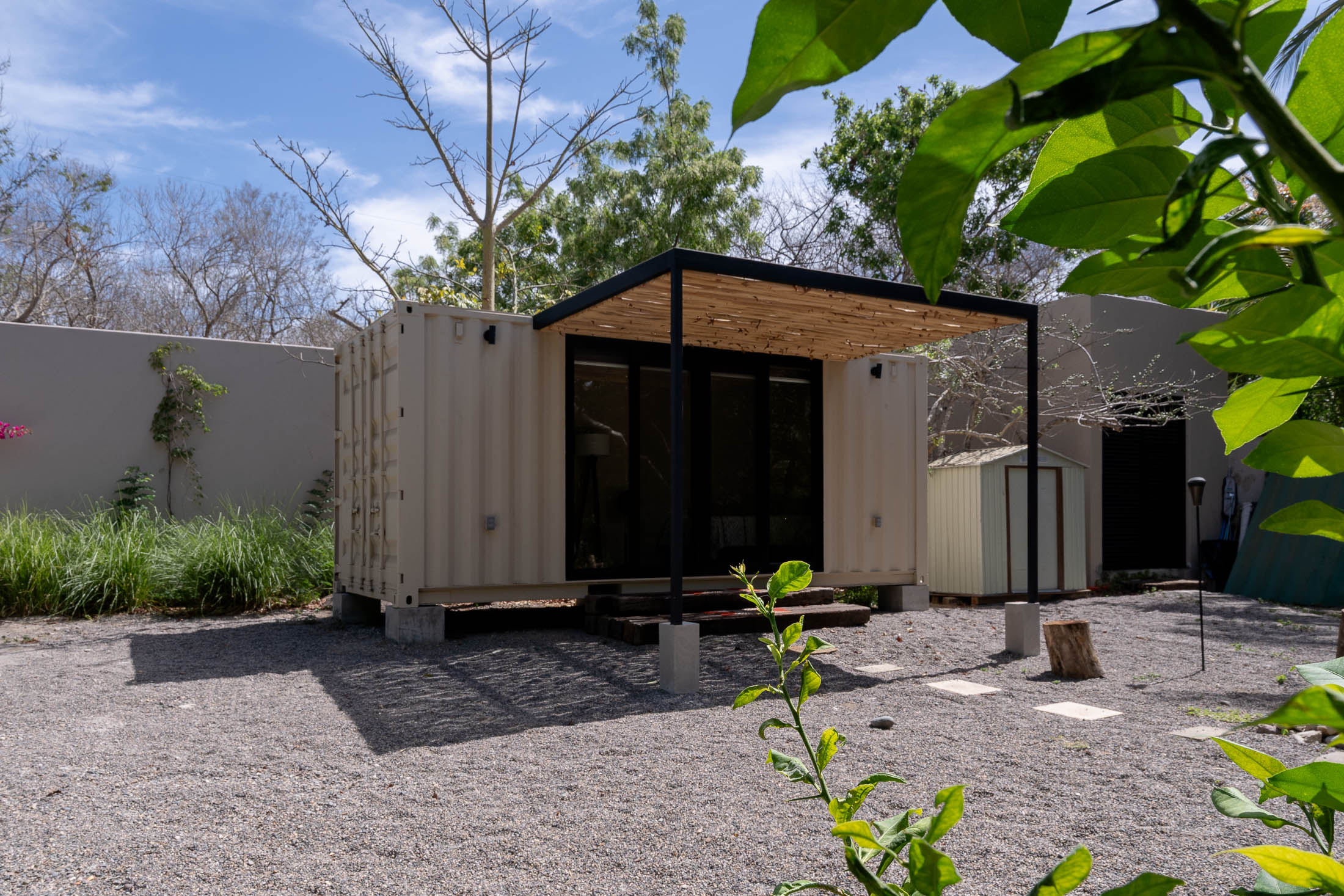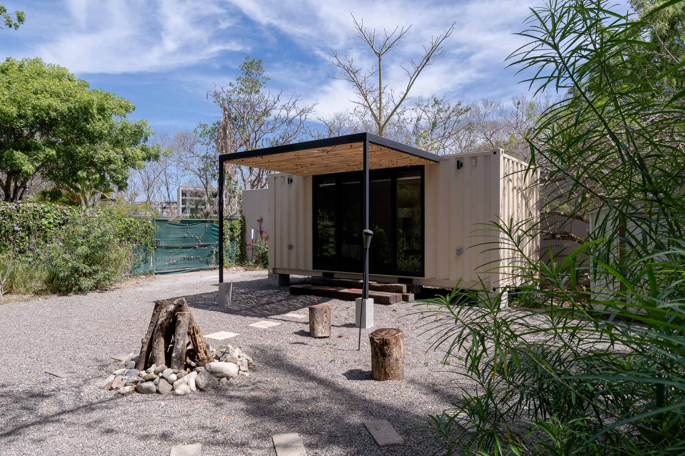 Second separated structure has a bunk bed and full bath. Third converted container comfortably sleeps two with nice finishings and a/c.