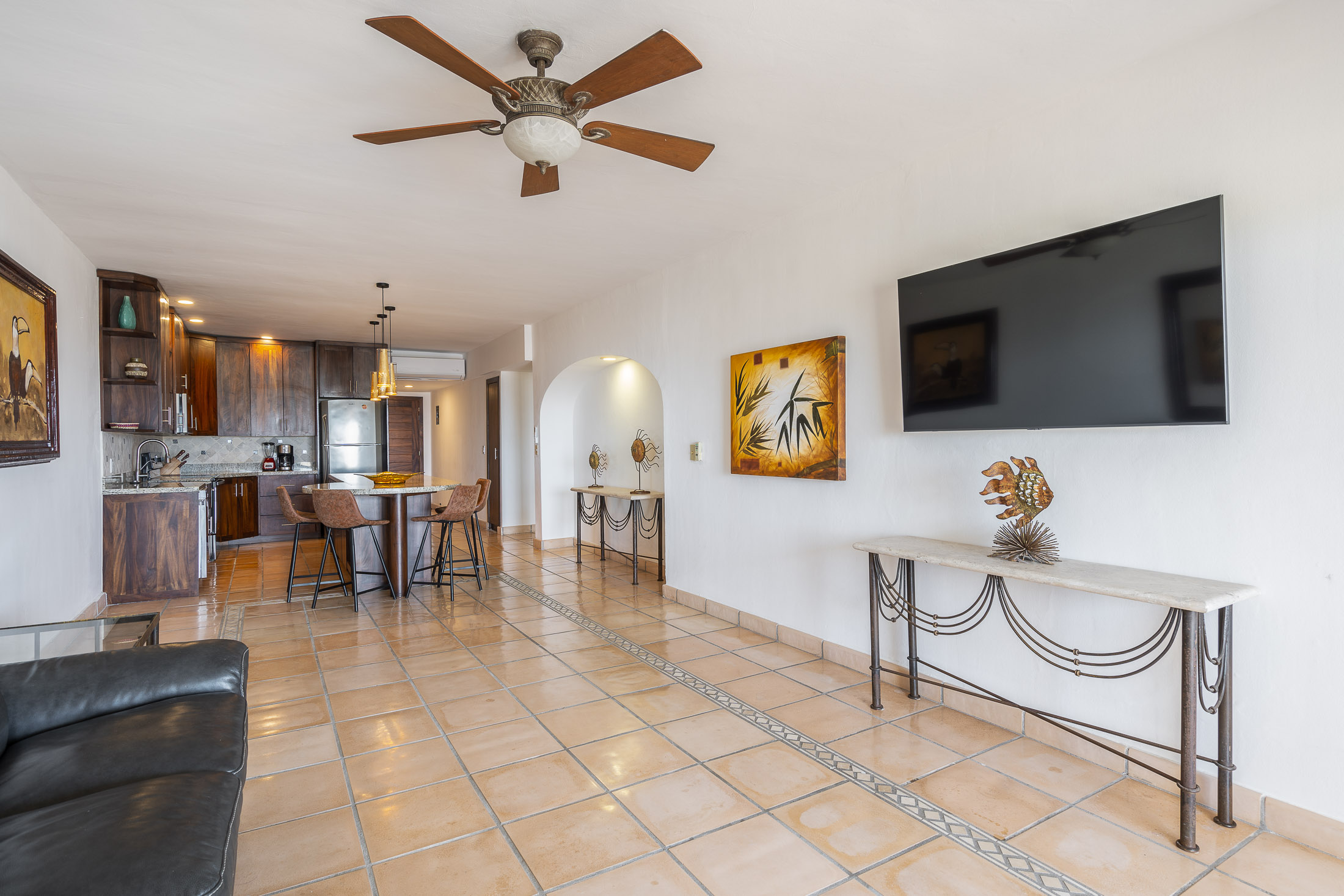 Enjoy great views of Banderas Bay in this well appointed second floor 2 be- droom/ 2 bathroom unit at the gated community of Condominios Punta de Mita across the street from one of the best surf breaks in the area. A bridge connects the development with the beach, shops, “restaurant row”, and a surf break.