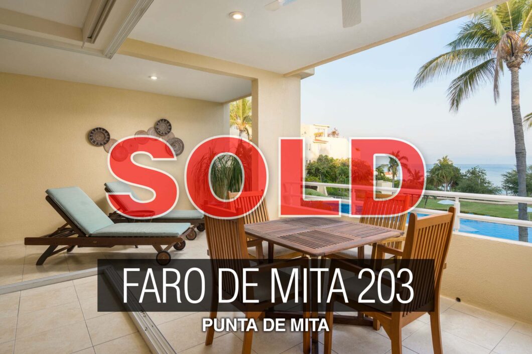This is a three bedroom/two bathroom second floor condominium with a wonderful view of the ocean and palm trees in the gated development of the Faro de Mita Con- dominios.