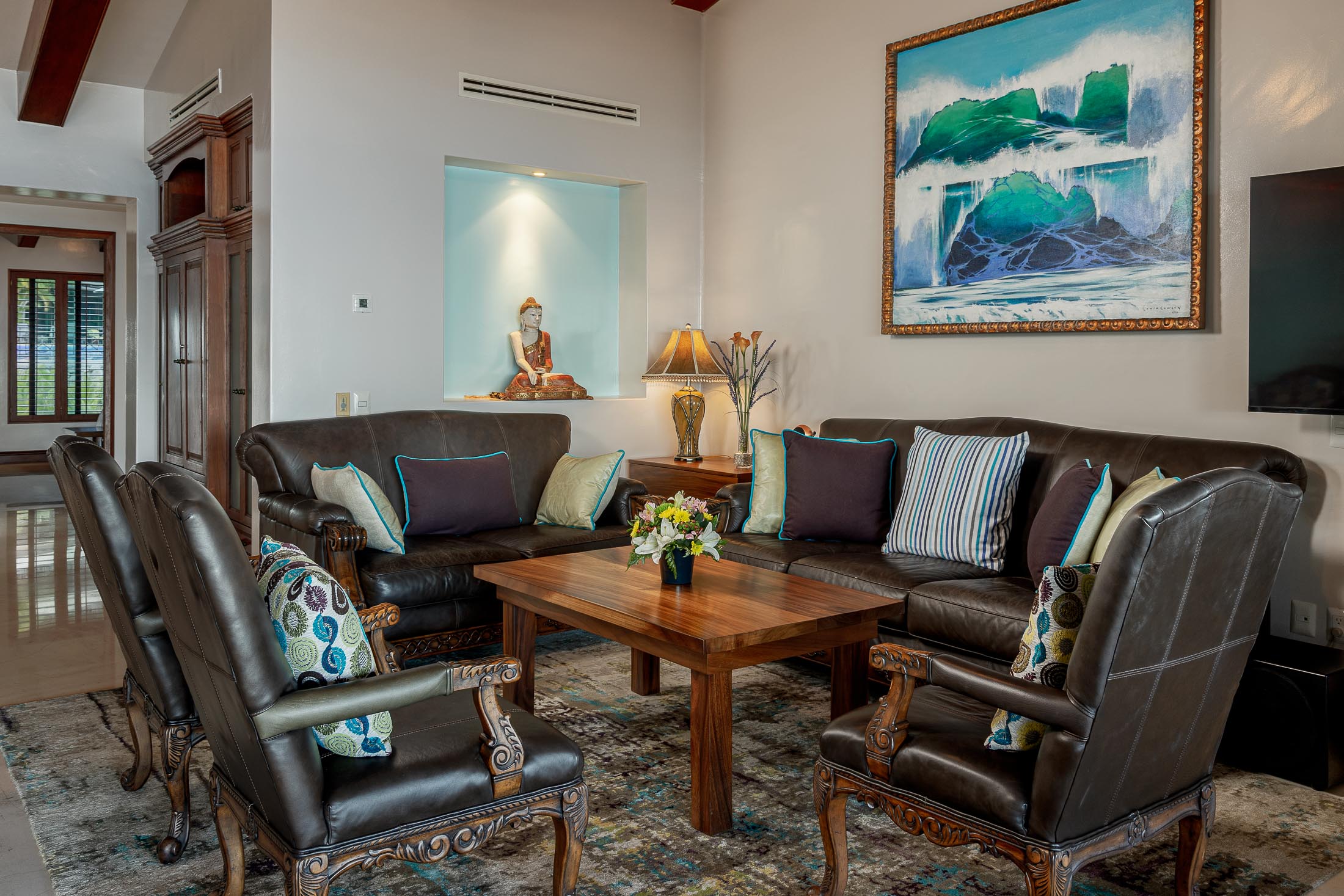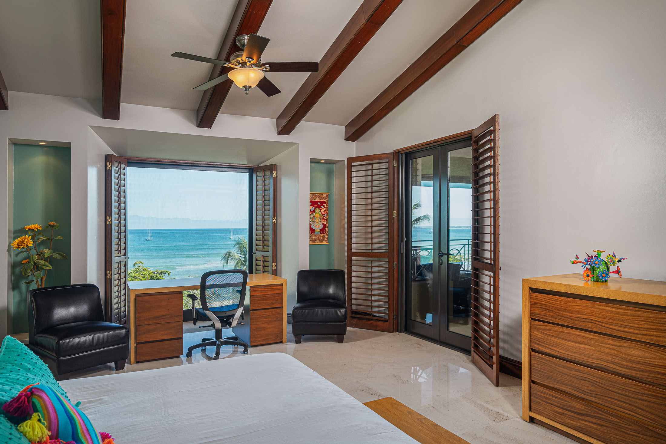 Step onto your expansive terrace to take in sweeping sunrise views over the Pacific, or unwind in your infinity-edge pool and jacuzzi overlooking the surf break just steps from your door. The glass doors invite natural light and sea breezes into every room, creating a seamless connection between the refined interiors and the breathtaking seascape.